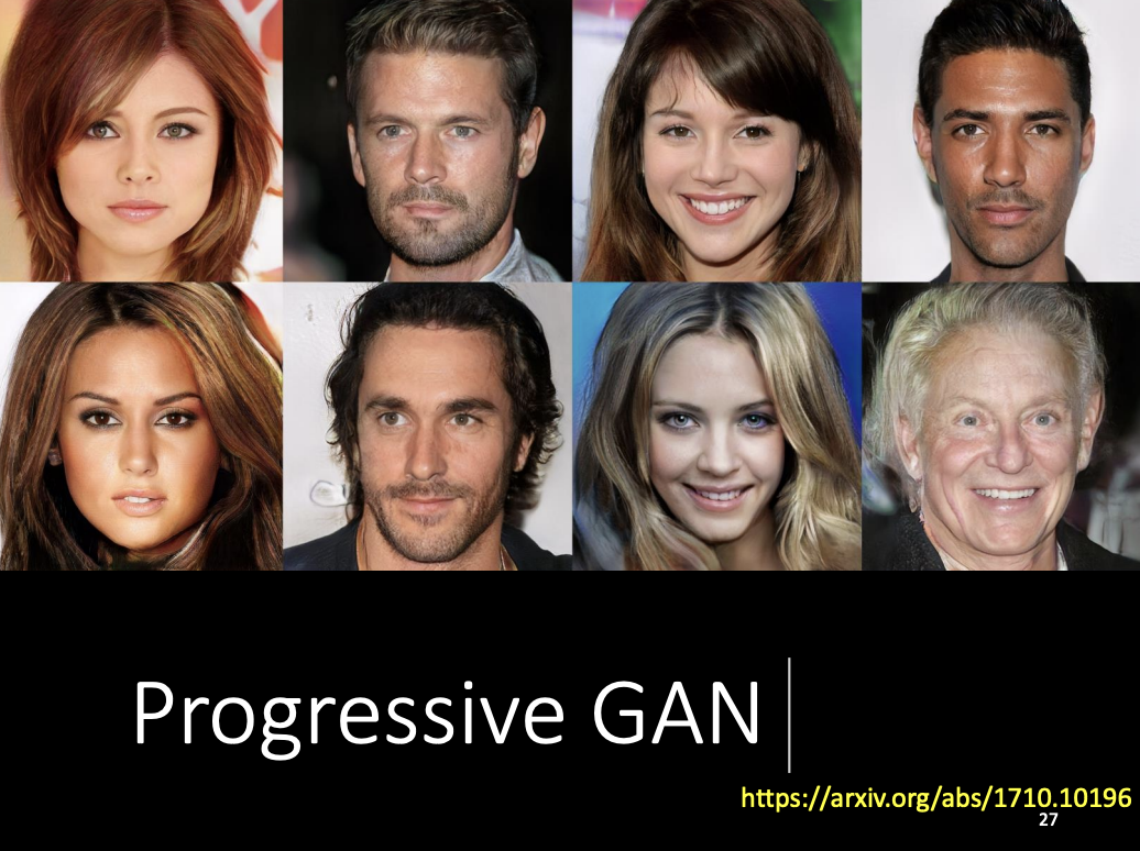 - Examples of models: StyleGAN, Progressive GAN, and BigGAN.
