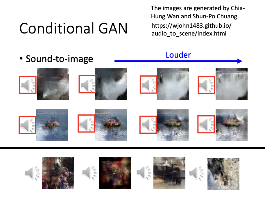Sound-to-image synthesis is also an example of a conditional GAN application.