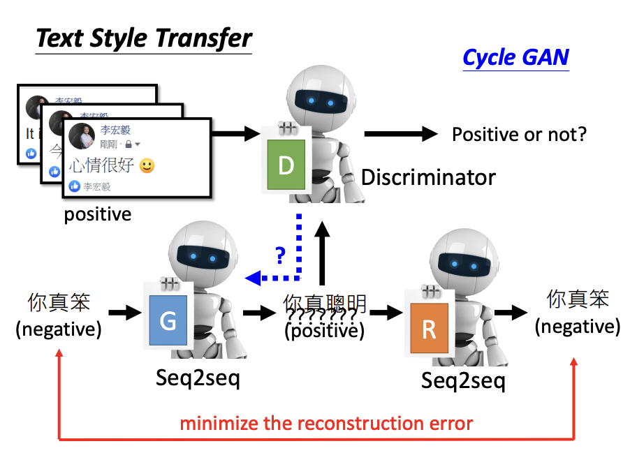 Beyond image style transfer, CycleGAN can also be applied to tasks such as text style transfer.