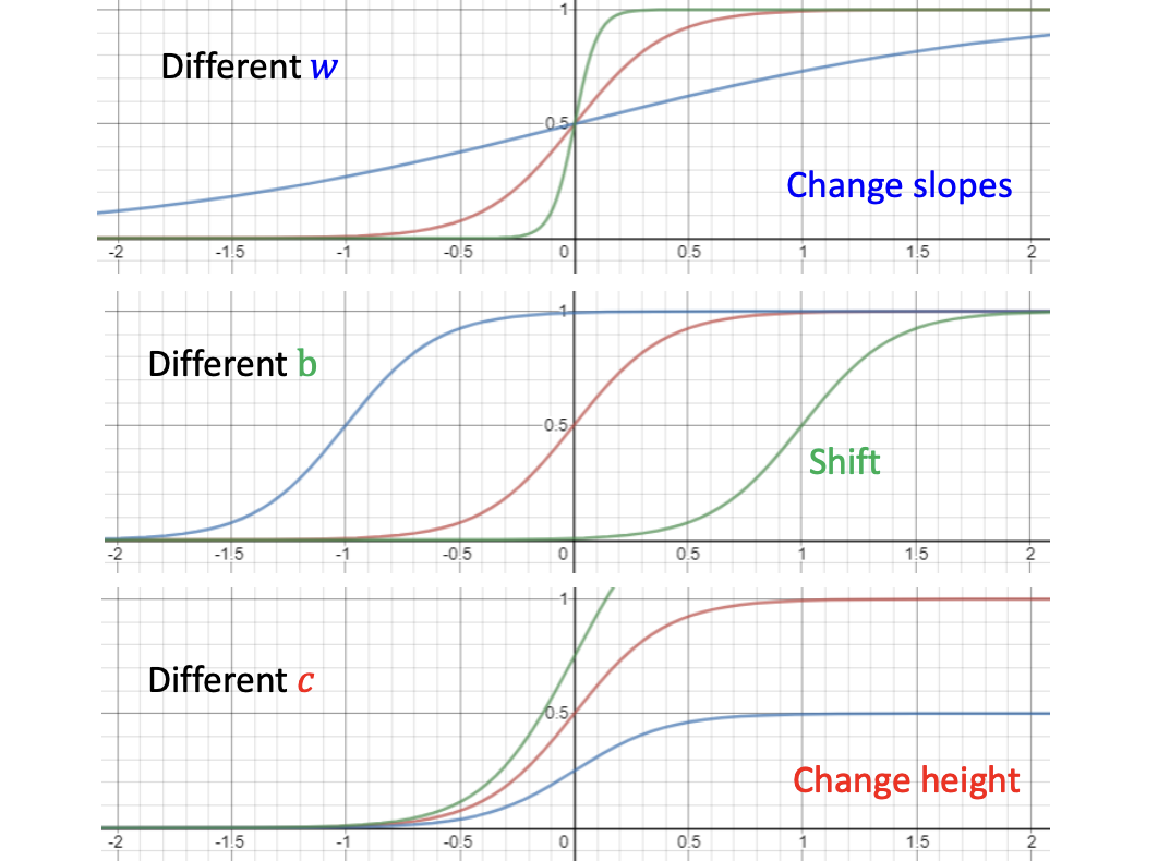 - $y=c * sigmoid(b + w *x) $