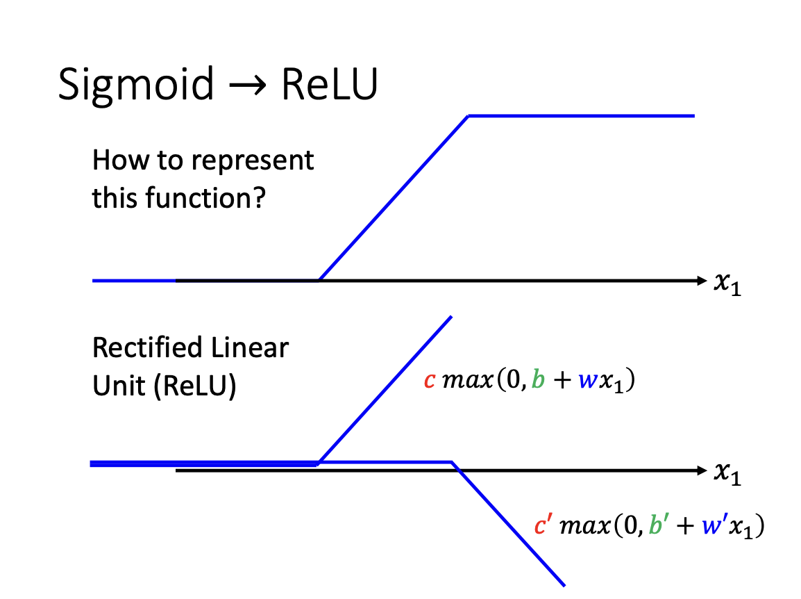 In addition to the sigmoid function, the ReLu(Rectified Linear Unit) is another function to build a model, which is often faster to compute.
