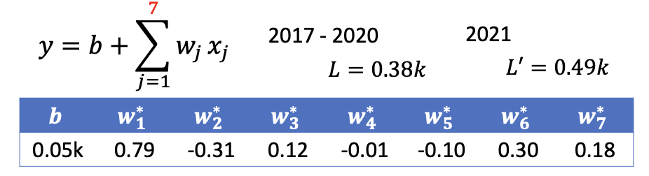 to predict future base on a single past data point. - $y = b + \sum_{j=1}^{7}w_jx_j$