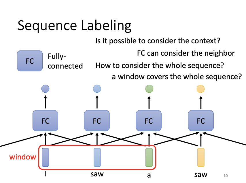 For sequence labeling tasks, fully connected networks often fail to capture dependencies between vectors, as they treat each input vector independently. While sliding windows can capture local dependencies by considering nearby vectors, this approach is limited because it cannot adapt to sequences of varying lengths. Moreover, using a window large enough to cover all input vectors may lead to inefficient models with a large number of parameters. To address these limitations, self-attention mechanisms are introduced.