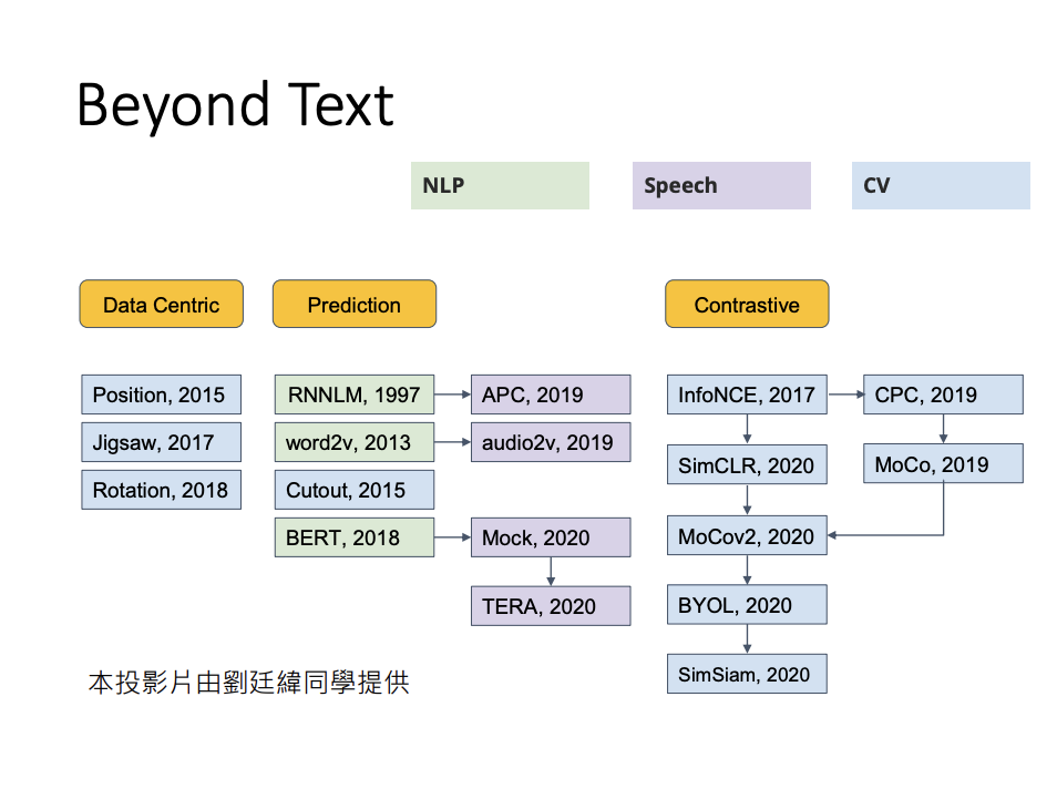 Self-supervised learning is not limited to text-based applications. It extends to other domains such as natural language processing (NLP), speech processing, and computer vision (CV), where it continues to demonstrate remarkable potential in learning from unlabeled data.